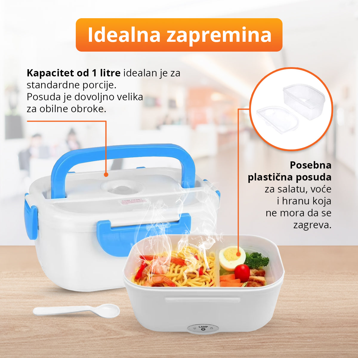Zaboravite na hladan obrok ili čekanje u redu za mikrotalasnu u firmi. Sa ovom električnom posudom ćete imati topao i ukusan obrok nalazili se na poslu, školi ili nekom putu, a potrebna Vam je samo struja.