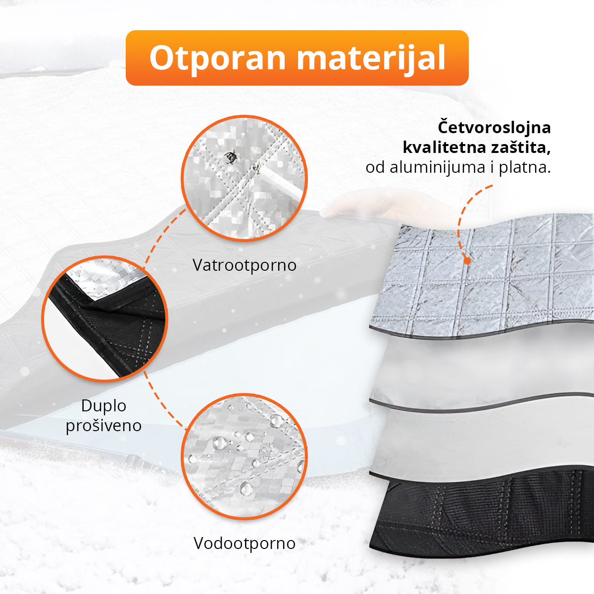 Ono što ovu zaštitu čini jedinstvenom je da štiti i retrovizore. Na zaštitu su došivene i posebne navlake koje prekrivaju cele retrovizore i ne dozvoljavaju ledu da se uhvati na stakla.